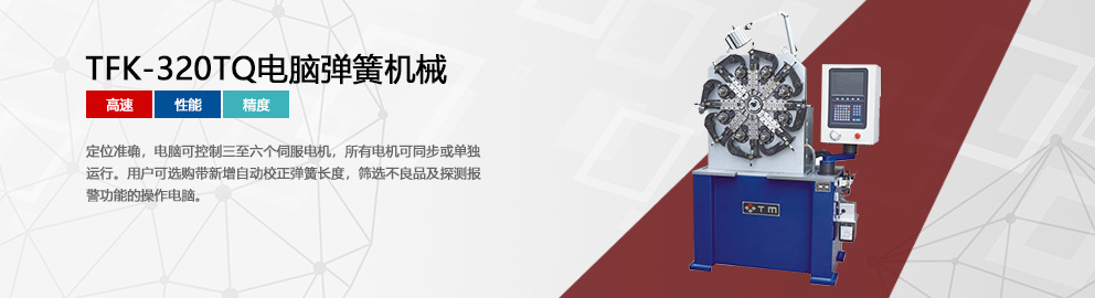 東莞市西田彈簧機(jī)械有限公司,位于美麗的珠江畔,中國(guó)最具魅力城市——東莞市,地理位置優(yōu)越,交通方便。 東莞市西田彈簧機(jī)械有限公司是集彈簧設(shè)備研發(fā)、測(cè)試、制造、銷(xiāo)售于一體的民營(yíng)科技企業(yè),生產(chǎn)的電腦彈簧機(jī)型號(hào)有:TCK-208N/Y壓簧機(jī)、TCK-208B壓簧機(jī)、TCK-220A/226A壓簧機(jī)、TCK-235A/335A壓簧機(jī)、TCK-350A/550A壓簧機(jī)、TCK-580A壓簧機(jī)、TFK-320TQ/620TQ數(shù)控彈簧機(jī)、TFK-330/335TQ數(shù)控彈簧機(jī)、TFK-340/350TQ數(shù)控彈簧機(jī)等系列,彈簧機(jī)繞制的鋼線(xiàn)直徑為0.15-8.0毫米,可繞制拉簧、扭簧、壓簧、異形簧等各式彈簧......